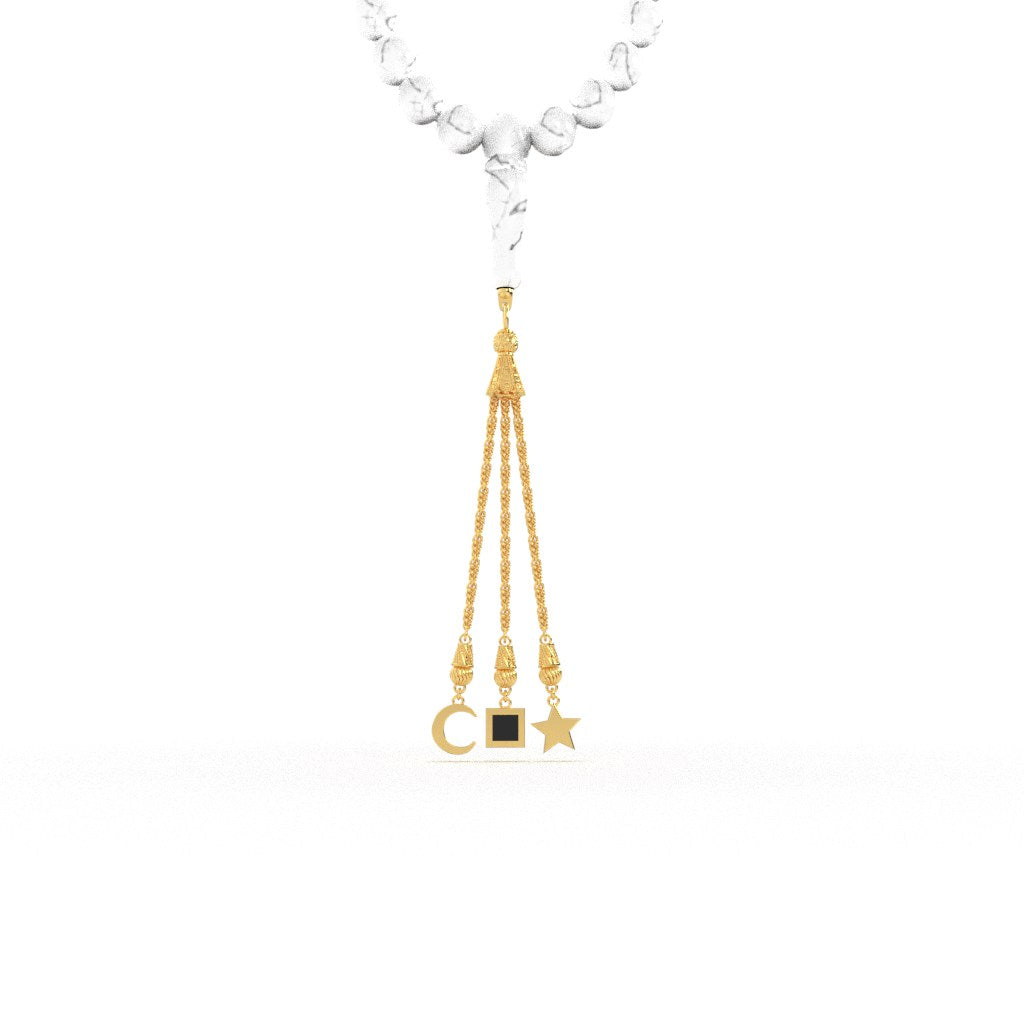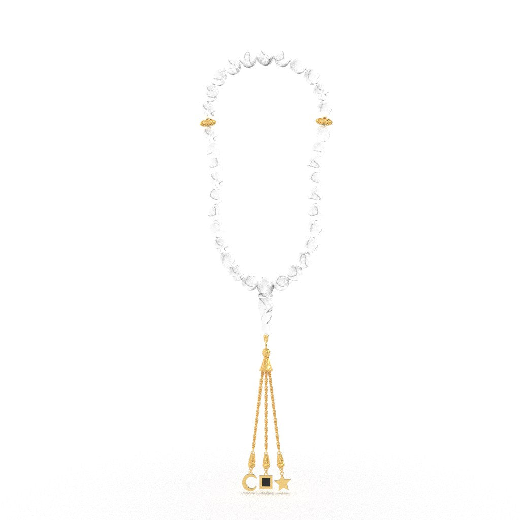 Este exquisito misbaha está meticulosamente hecho a mano con cuentas de mármol de primera calidad que ofrecen un tacto suave y fresco, perfecto para momentos de reflexión, oración y paz.