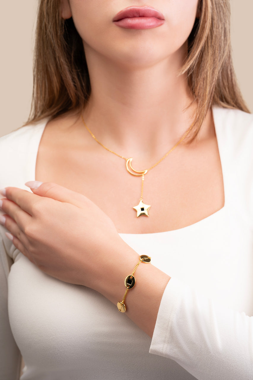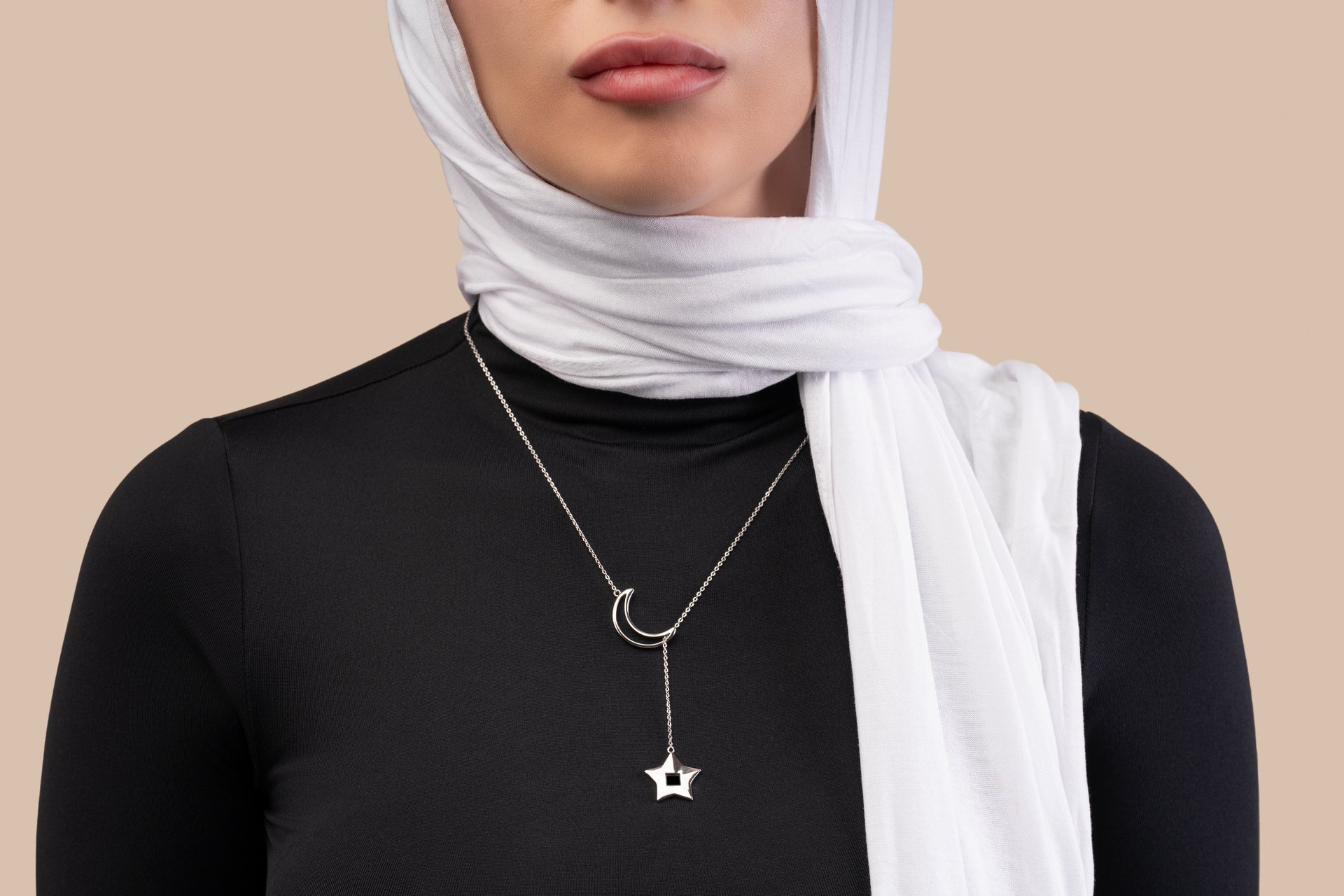 Beneath the night sky, where faith and light intertwine, this exquisite necklace captures the eternal beauty of devotion.