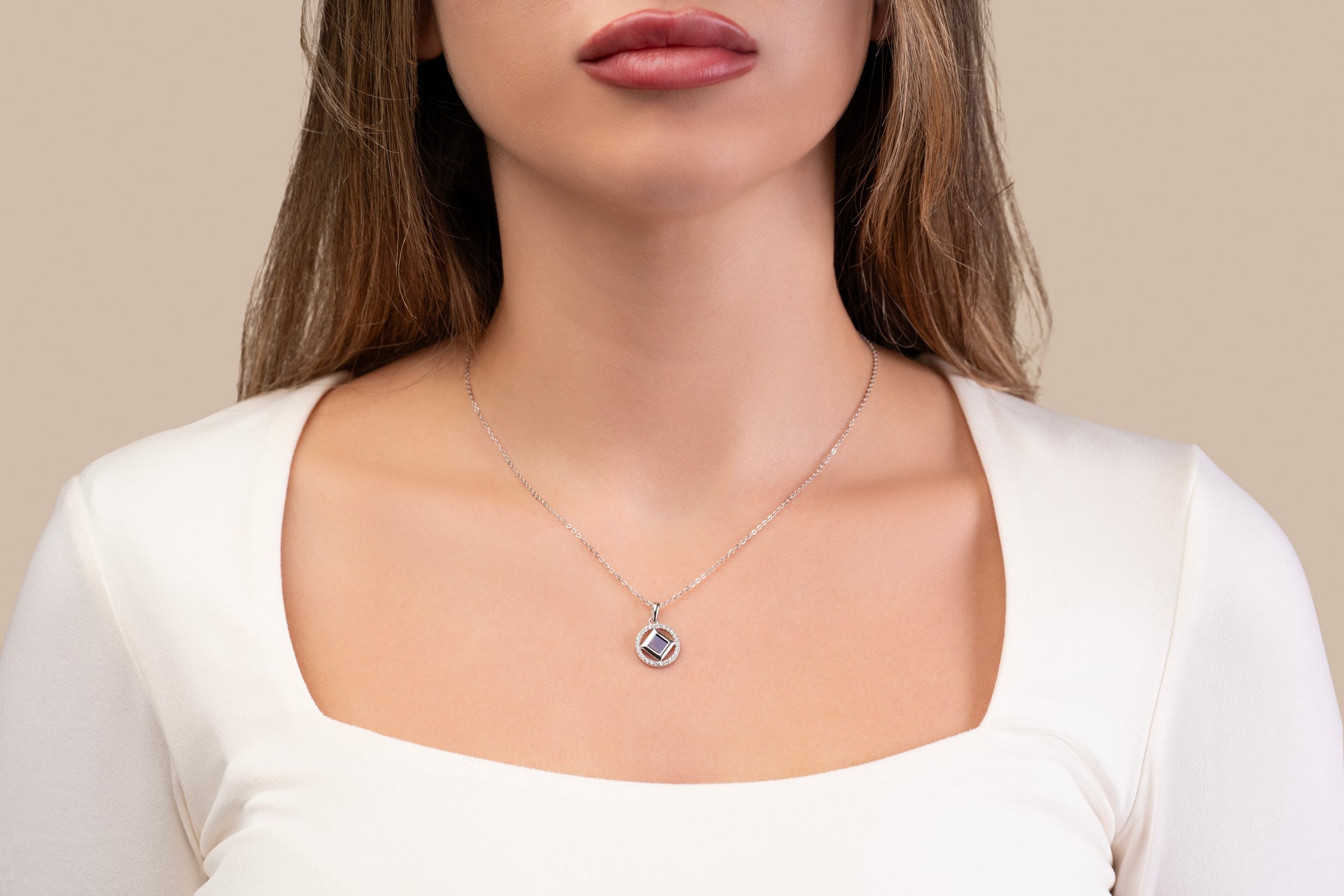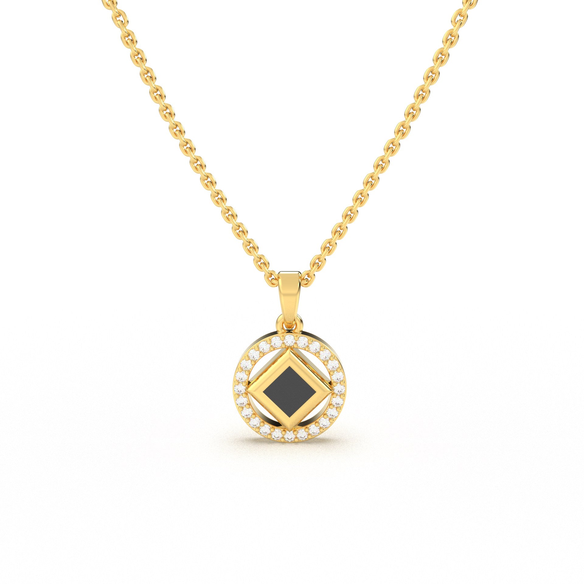 This distinguished necklace showcases a round pendant, gracefully framed by radiant stones, with the complete Holy Quran delicately embedded at its heart.